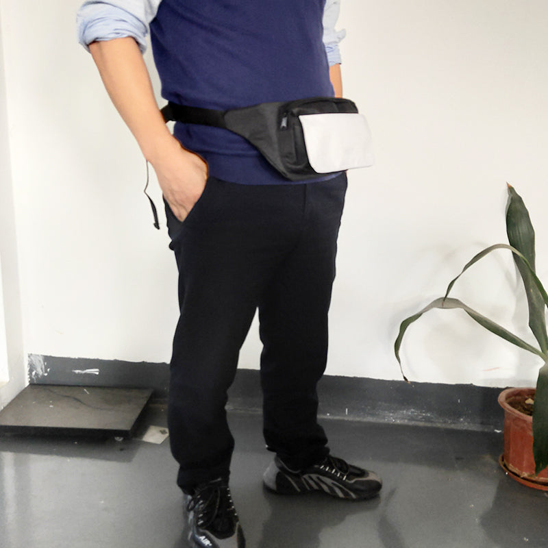 This waist bag features three accessible storage locations, a 23"-44" adjustable waist strap, an 8.5" x 4" detachable sublimation flap, and a 10" x 6" compressed bag.