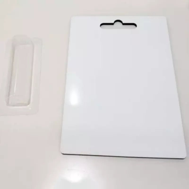 This MDF card has a protective film over the sublimation area that must be removed before sublimation. Sublimate at the time and temp you would a normal MDF blank.
