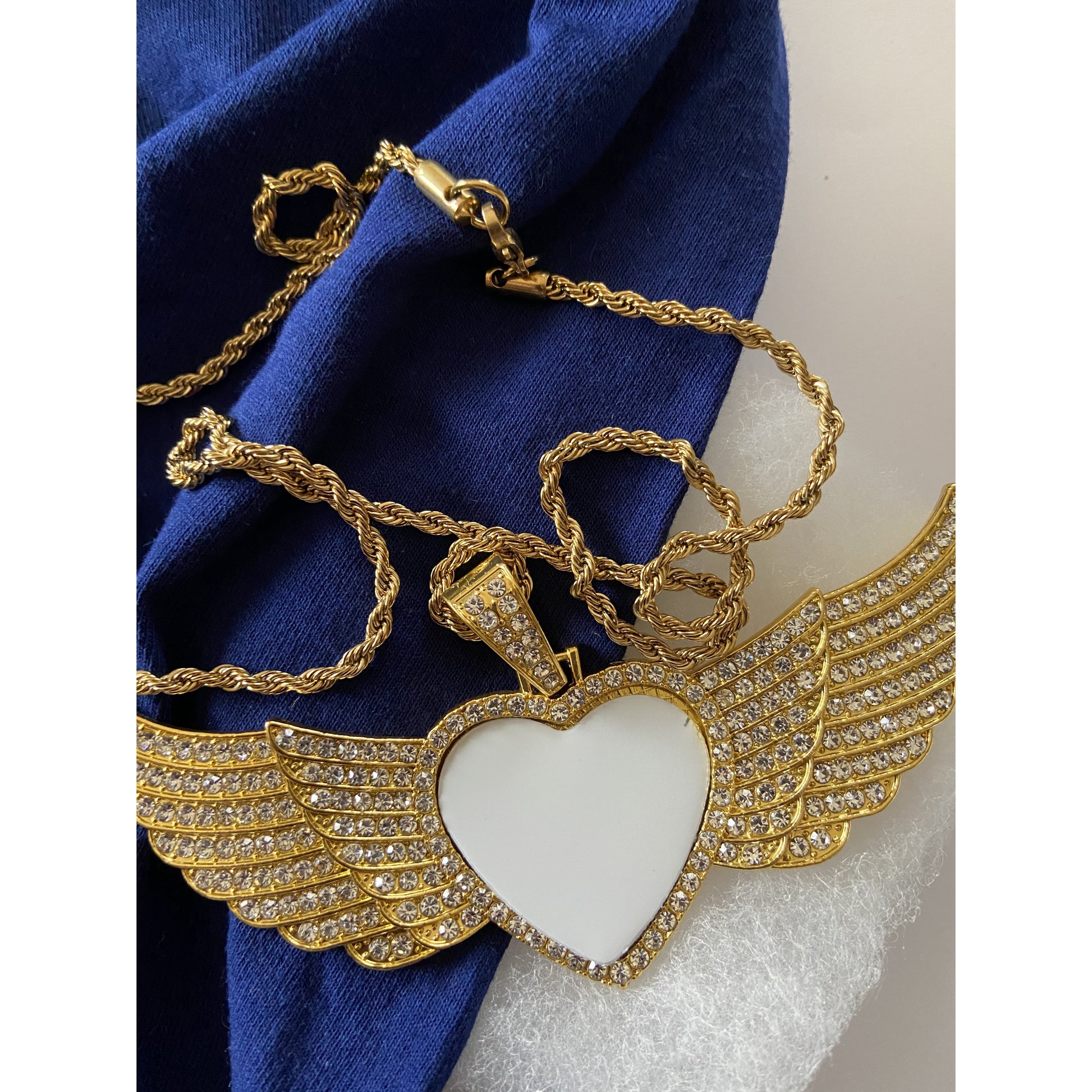 Large Sublimation heart necklace with angel wings and diamond accents, 20" long chain with this beautiful angel wing pendant